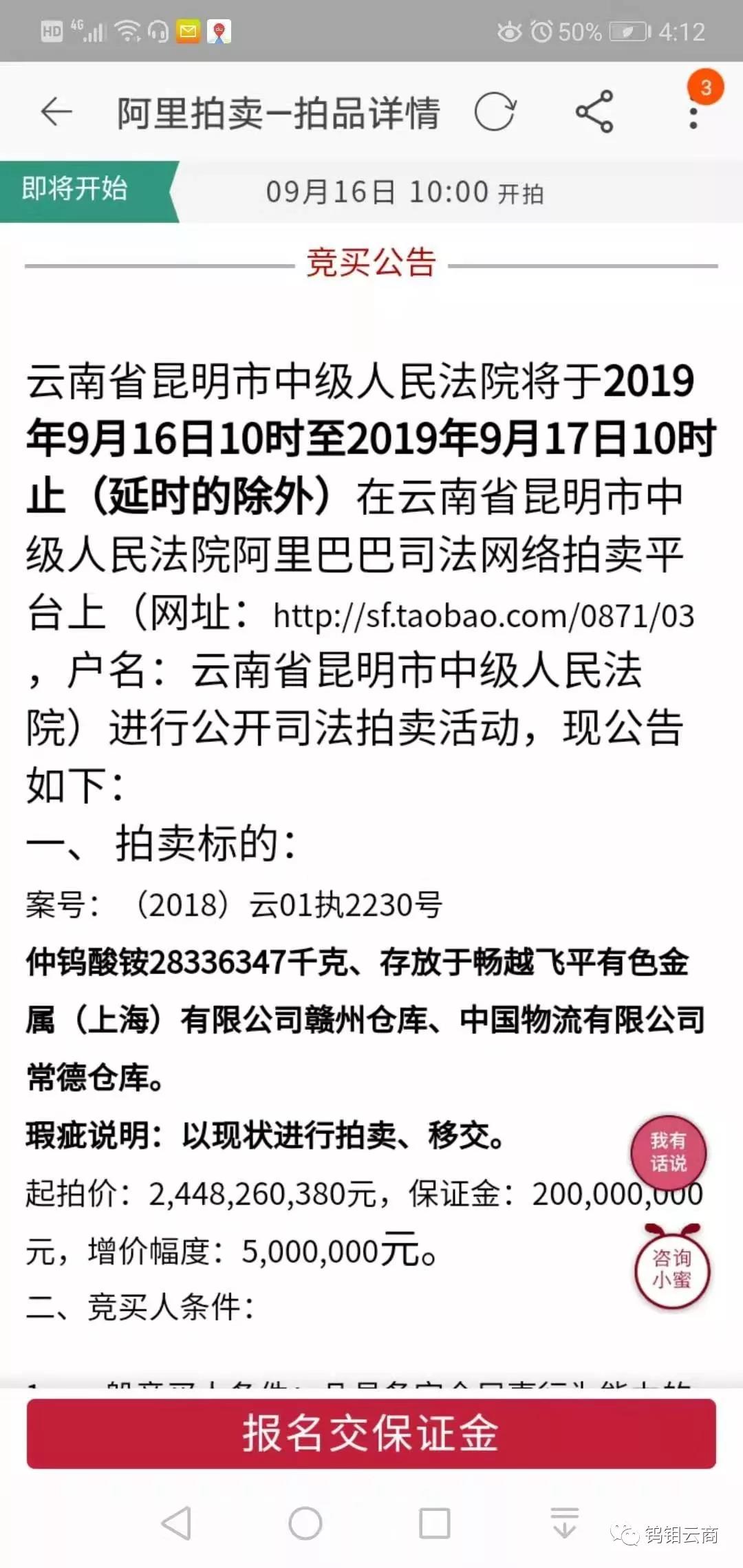 起拍价:2,448,260,380元,保证金:200,000,000元,增价幅度:5,000,000元。